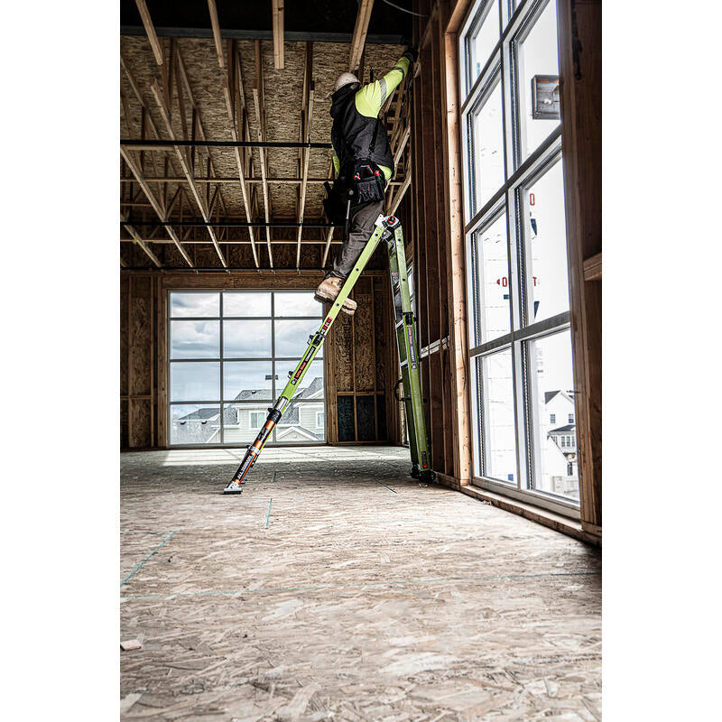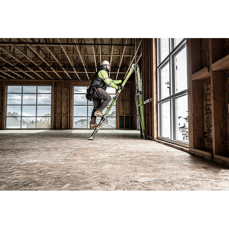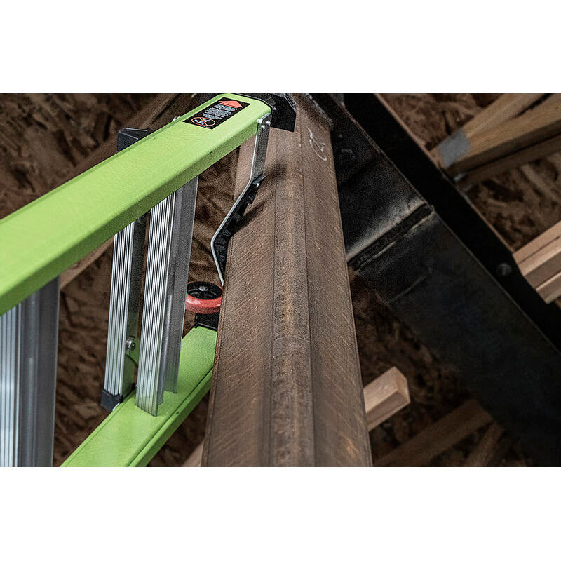 The extension side of the ladder is narrow enough to access tight spaces between wall studs, ceiling trusses and roof or attic access ports, and can be safely set up on poles or outside corners. The wall pad feet are designed for use on inside corners and flat walls without damage to the surface.