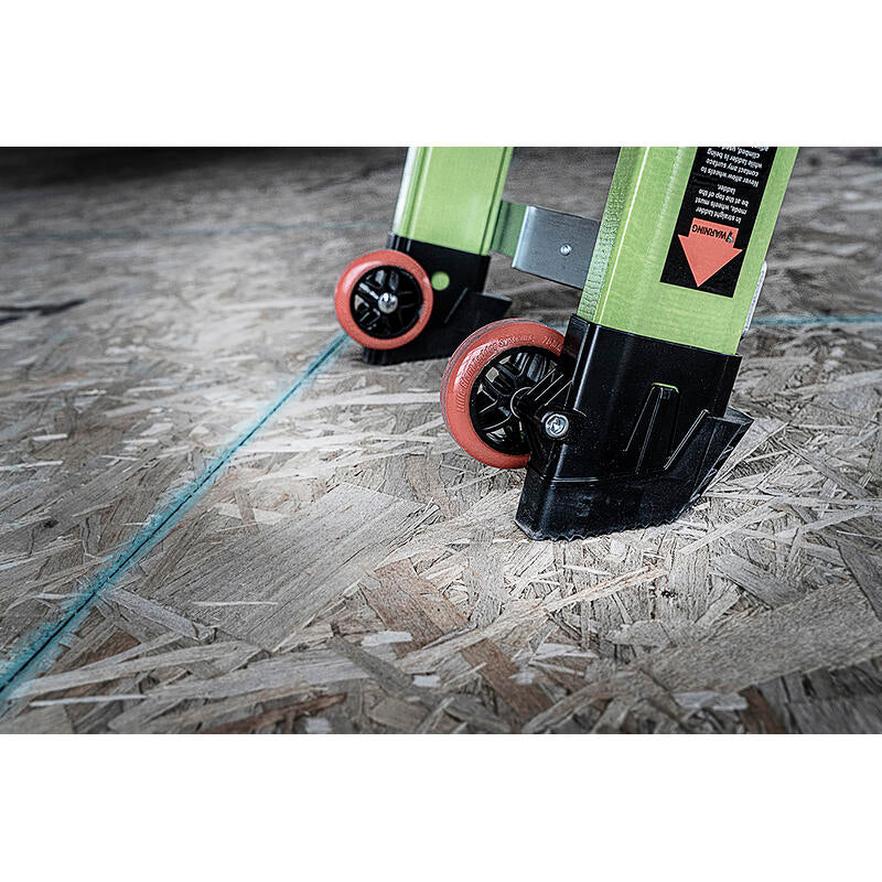 The integrated Tip & Glide wheels help you move the ladder easily from job to job.