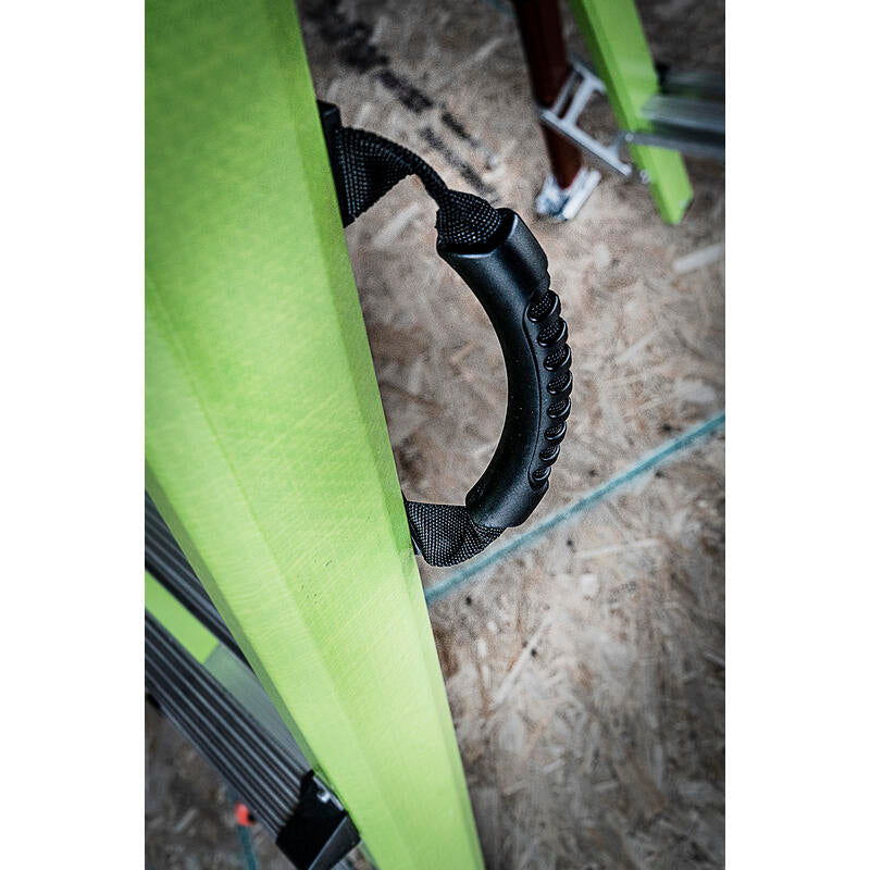 Weight-balanced carrying handle simplifies the transportation of the ladder.