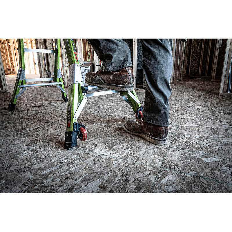 The Dark Horse's integrated Tip & Glide wheels help you move the ladder easily from job to job.