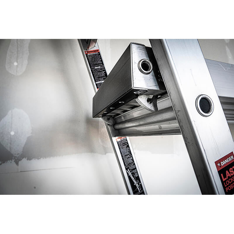 The Little Giant® Telescoping Plank™ turns your multi-position ladder into trestle-and-plank scaffolding when you attach Trestle Brackets™* to your ladder. The Plank hooks securely to the ladder rungs of the inner and outer section of your ladder to give you a comfortable, solid platform to stand on while you paint, hang drywall or install light fixtures. The Telescoping Plank allows you to replace expensive and labor-intensive scaffolding systems and adjusts to the length you need—available in 6’ to 9’, 8’ to 13’, 9’ to 15’ sizes. The lightweight Telescoping Plank is made from aircraft-grade aluminum and is rated to hold two people with a maximum weight of 500 lbs.